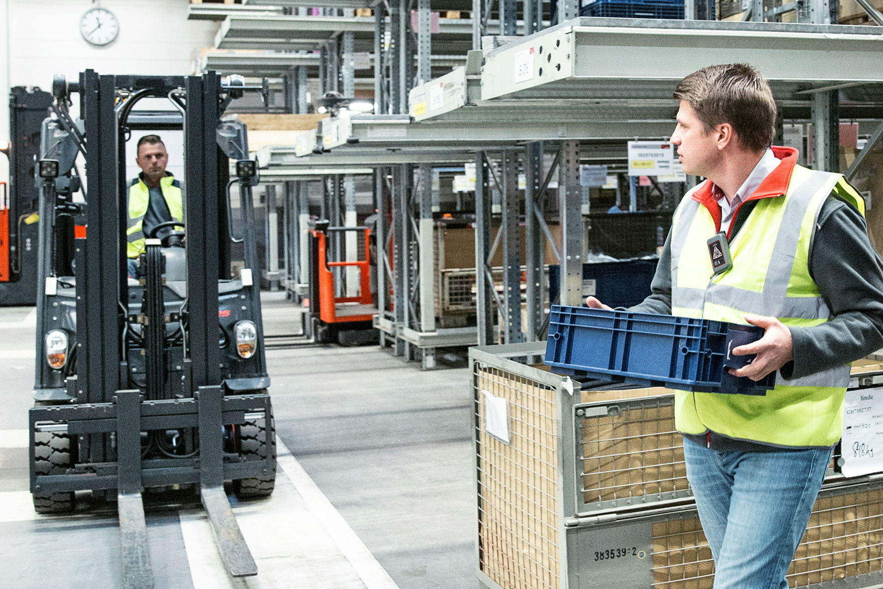 Heftrucks en voetgangers door elkaar op de werkvloer. Dat is vaak de oorzaak van ongevallen in magazijnen. Linde heeft er wat gevonden met nieuw hulpmiddel.