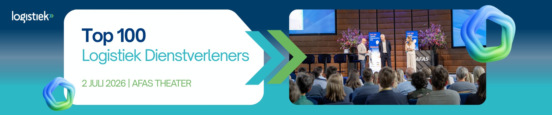 De Top 100 Logistiek Dienstverleners is al meer dan 20 jaar dé ontmoetingsplek waar de bedrijfstop van Logistieke Dienstverleners samenkomen. Het centrale doel van de uitreiking is de Logistieke Dienstverleners naar een hoger niveau te tillen. Het hoogtepunt is het Top 100 Logistieke Dienstverlening Diner.