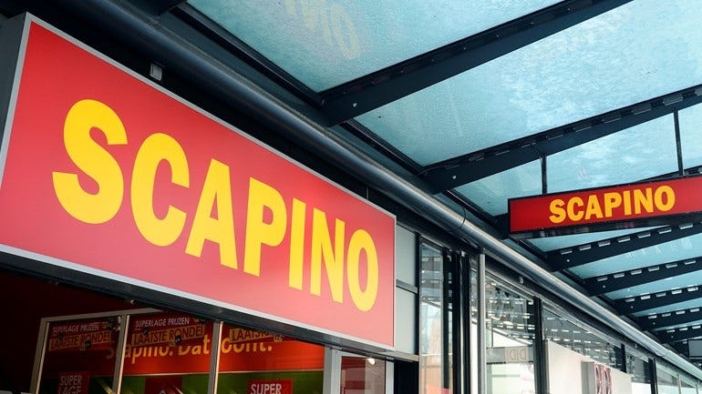 Een groot deel van de winkelmagazijnen van Scapino in Assen wordt ingezet voor de bezorging van online bestellingen.