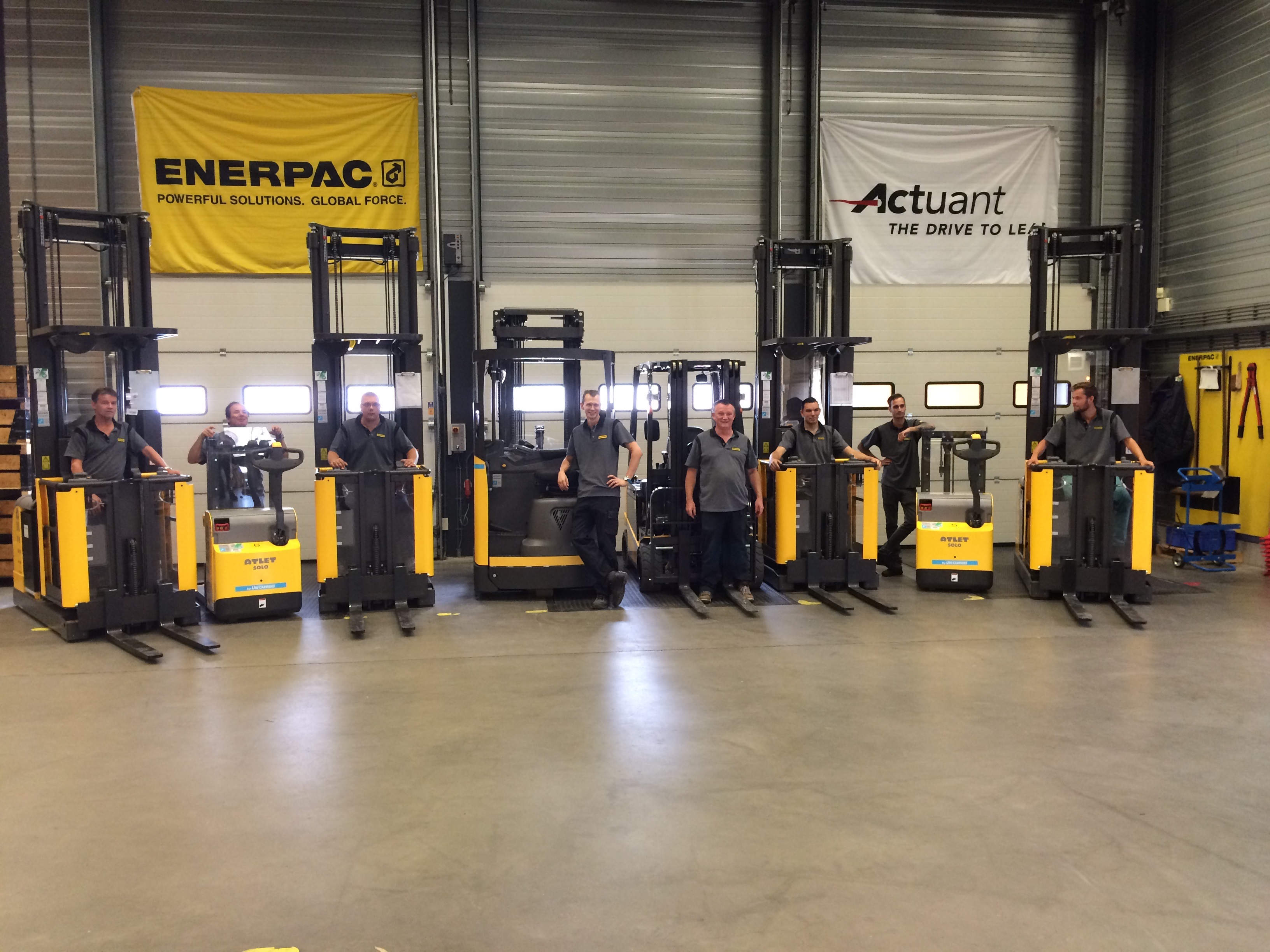 Unicarriers levert acht magazijntrucks aan Enerpac in Ede. Unicarriers paste de trucks aan op basis van de wensen van Enerpac. Unicarriers service.