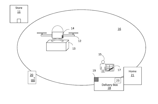 Walmart en Amazon voegen een nieuw hoofdstuk toe aan de bezorg met een drone. De drone van Walmart wordt intelligenter dankzij blockchain. Drone in toren